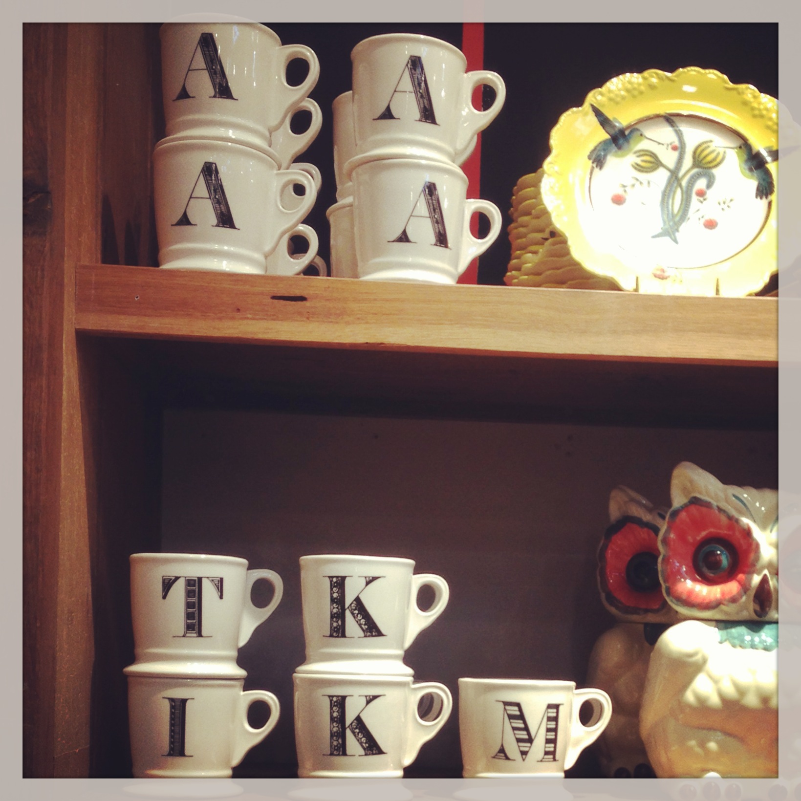 ..and the monogram mugs – I think my morning coffee would taste really good in one of these. Because I do so much of my shopping online, it is easy to forget how nice it is to browse around the shops even if you’re just looking. However well laid out and presented a website is, it’s no substitute for the real thing!
